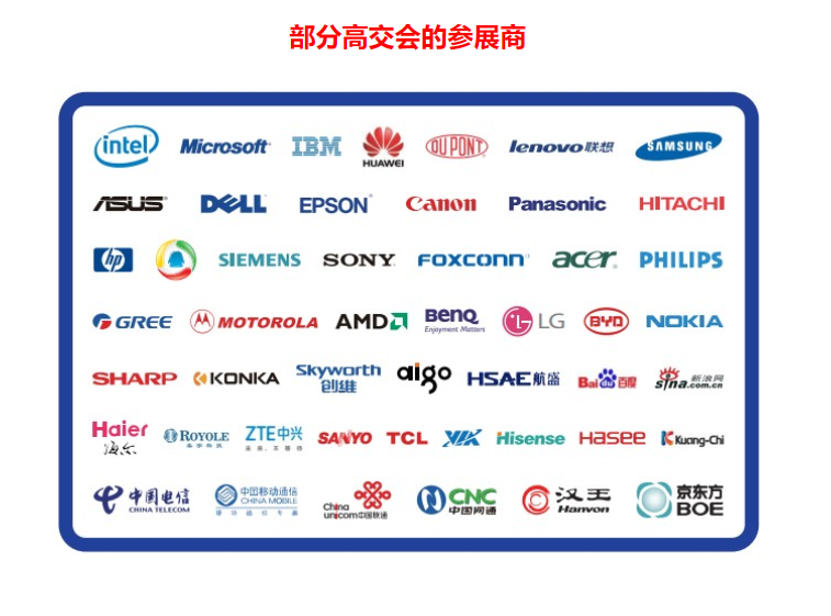 ? 高交會為眾多企業(yè)帶來良好收益。微軟、IBM、索尼、高通、三星、惠普、西門子、東芝、甲骨文、LG、日立、松下等60多家跨國公司先后多次參展,騰訊、華為、金蝶、科大訊飛、大族激光、同洲電子等一大批優(yōu)秀中國民營企業(yè)從這里走向世界。