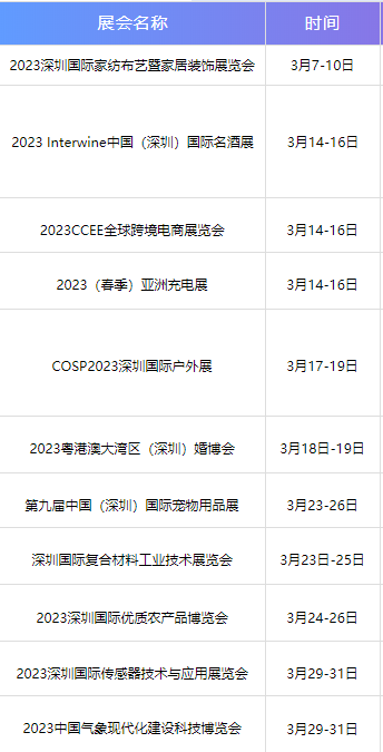 三月寶安區(qū)展會排期 地址:深圳市寶安區(qū)福海街道和平社區(qū)展城路1號