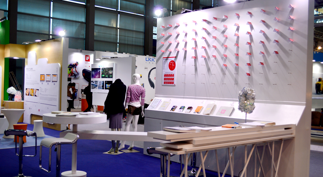平面展示是最基本的且笨拙的展示方法,往往讓觀眾沒(méi)有太大的感覺(jué)和效果。不同高度和形狀,用懸掛和支撐等方式錯(cuò)落有致的布置展臺(tái)更能增加產(chǎn)品的吸引力。