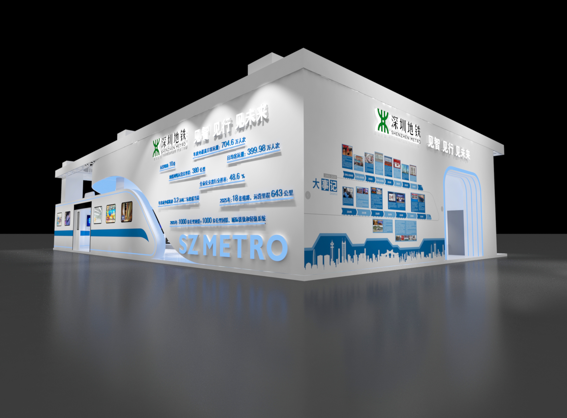 本屆展會邁思展覽為深圳地鐵提出了“見智 見行 見未來”的展示主題。見智-智者思遠,深圳地鐵的過去,肩負使命、高屋建瓴、長遠規(guī)劃;見行-行者無疆深鐵人的現(xiàn)在,砥勵前行、團結(jié)奮進、深圳拓荒牛的本色;見未來 -未來已來,深鐵人的未來,深圳灣區(qū)核心的建造者,快人一步的領先者,TOD的深圳模式。